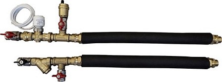 Узел регулирования включает (Двухходовой клапан, шаровый кран - 2шт, косой фильтр, воздухоотводчик, сливной кран, ниппель, тройник, разъемное соединение американка, соединительные подводки длинной 500мм) |